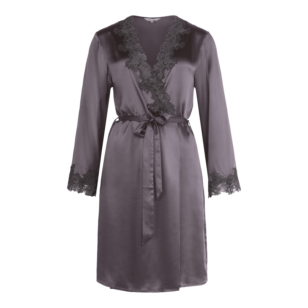 Lady Avenue Pure Silk Kimono, Grau